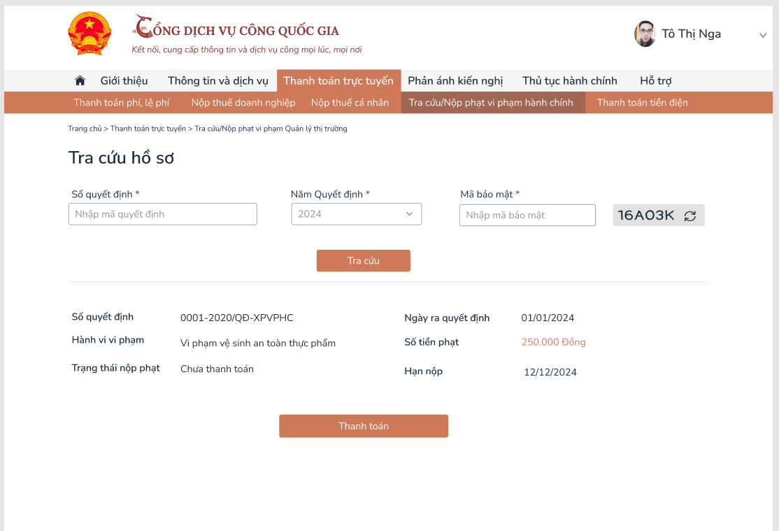 Để tạo điều kiện thuận lợi cho cá nhân và tổ chức trong việc thực hiện nghĩa vụ nộp phạt vi phạm hành chính trong lĩnh vực quản lý thị trường, Cổng Dịch vụ công quốc gia đã triển khai dịch vụ thanh toán trực tuyến. Dưới đây là hướng dẫn chi tiết các bước thực hiện: