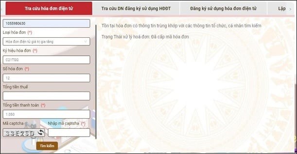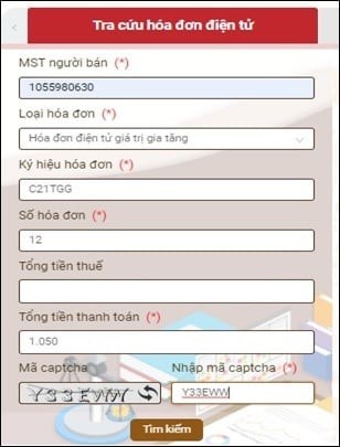 Bước 2: Nhập thông tin hóa đơn cần tìm kiếm, nhập Mã Capcha.