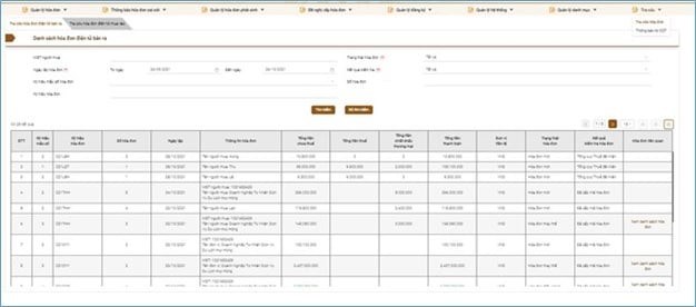 - Danh sách hóa đơn điện tử bán ra