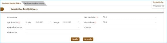 Màn hình Tra cứu hóa đơn điện tử bán ra
