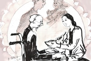Chị Thủy vừa rót nước, vừa nói: Cảm ơn chú. Cũng may có bác Cường giúp nên có lẽ cũng ổn chú ạ.