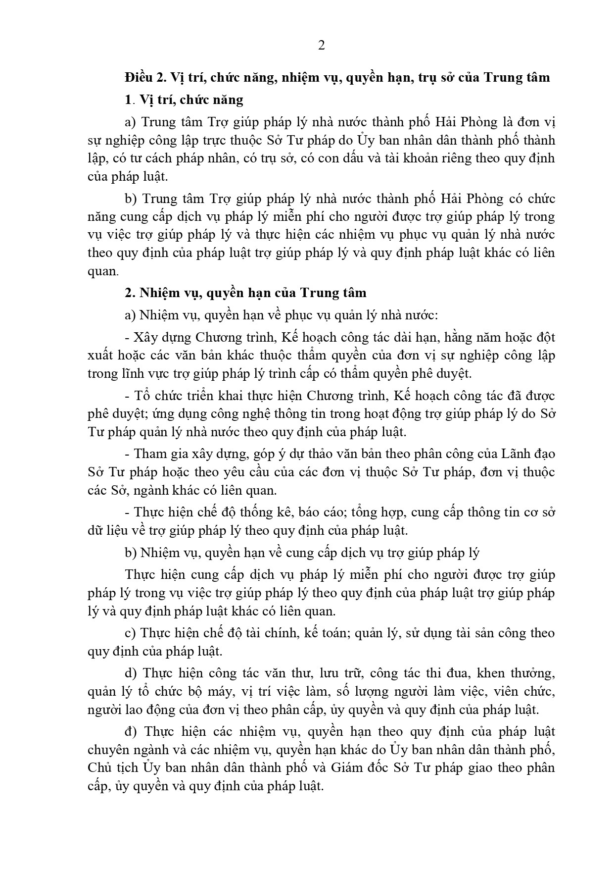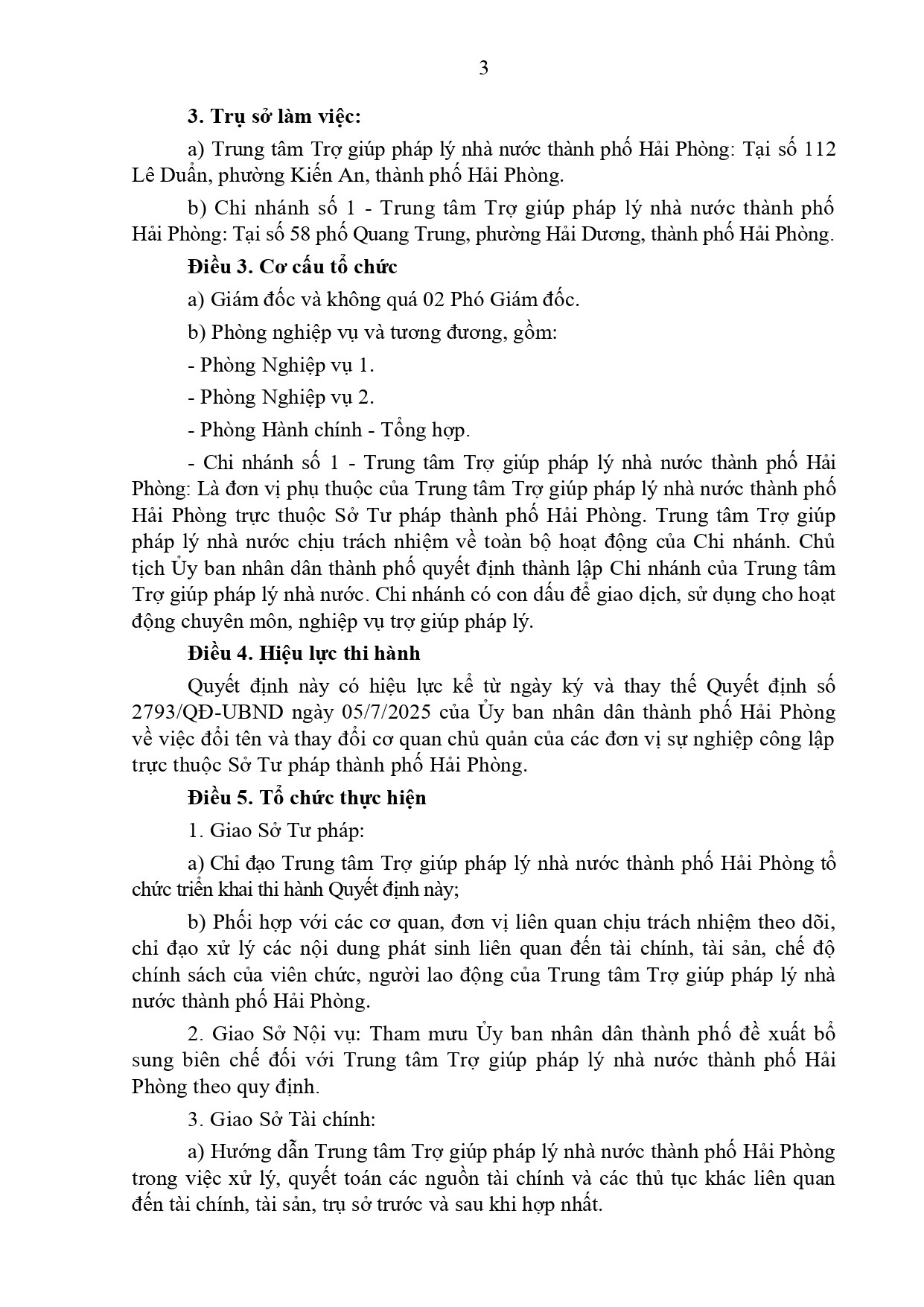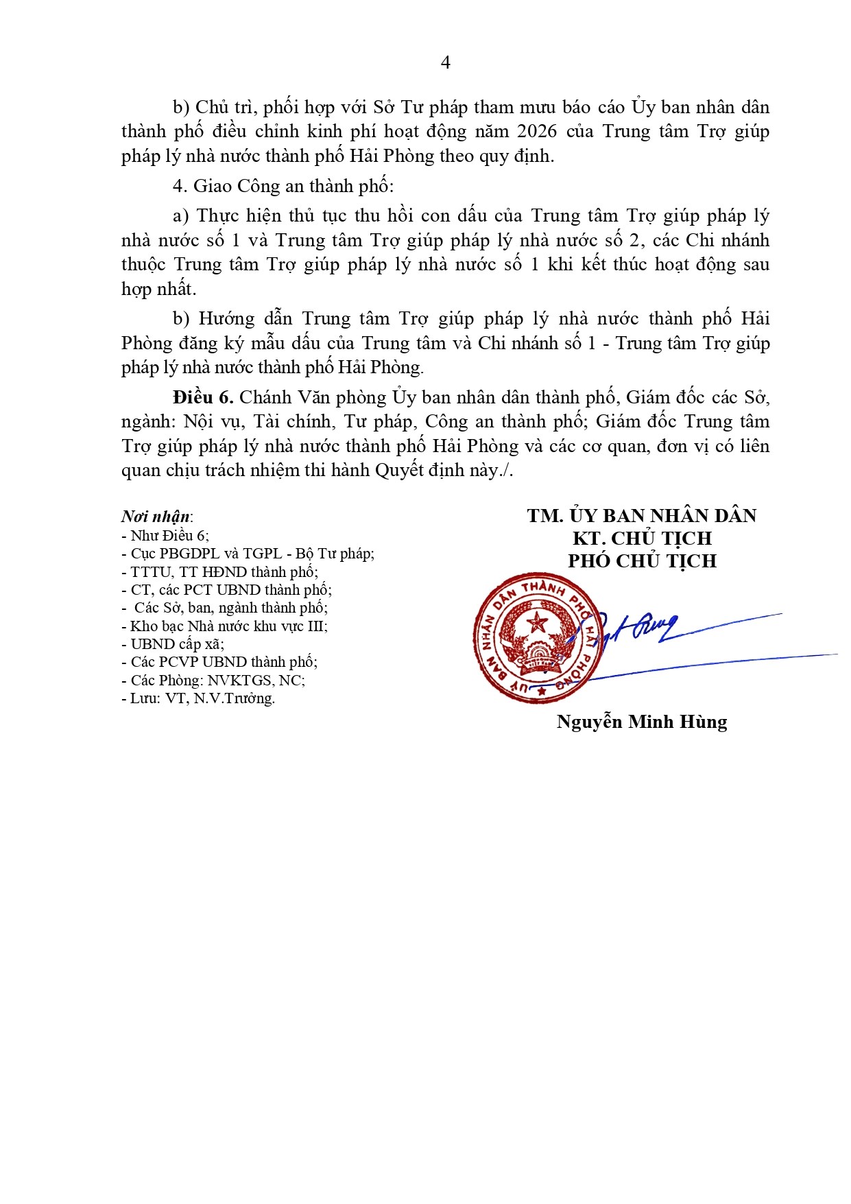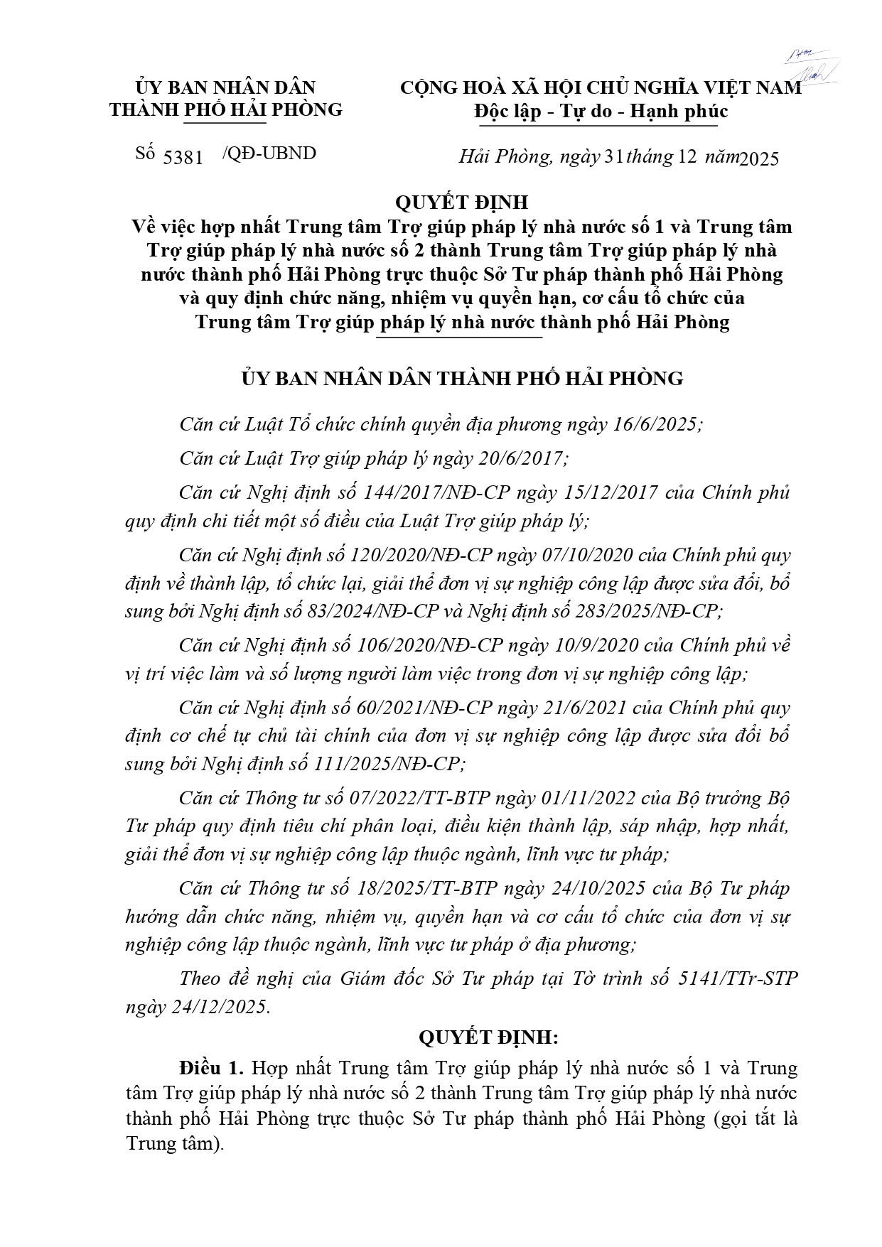 Quyết định hợp nhất Trung tâm Trợ giúp pháp lý nhà nước số 1 và Trung tâm Trợ giúp pháp lý nhà nước số 2 thành Trung tâm trợ giúp pháp lý nhà nước thành phố Hải Phòng