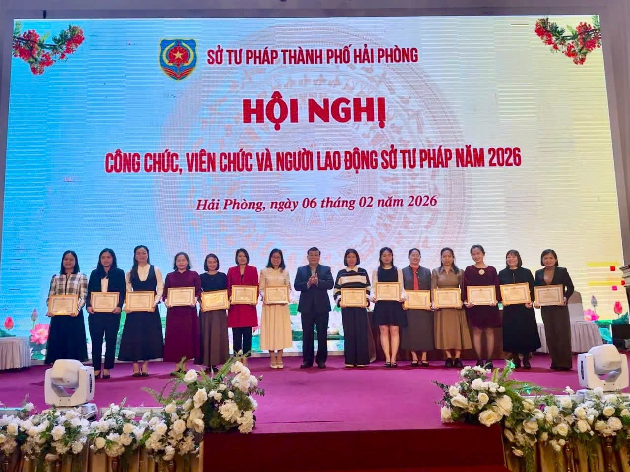 Trong không khí phấn khởi, sôi nổi của toàn Đảng, toàn dân, toàn quân thi đua lập thành tích chào mừng thành công Đại hội đại biểu toàn quốc lần thứ XIV của Đảng; hướng tới cuộc bầu cử đại biểu Quốc hội khóa XVI và bầu cử đại biểu Hội đồng nhân dân các cấp nhiệm kỳ 2026 - 2031, ngày 06/6/2026, Sở Tư pháp thành phố Hải Phòng đã tổ chức Hội nghị công chức, viên chức, người lao động năm 2026 và lễ trao tặng Huân chương Lao động hạng Ba cho đồng chí Đoàn Quang Định và đồng chí Vũ Văn Tỉnh - nguyên Phó Giám đốc Sở Tư pháp, ghi nhận những đóng góp quan trọng đối với sự nghiệp xây dựng và phát triển ngành Tư pháp thành phố.