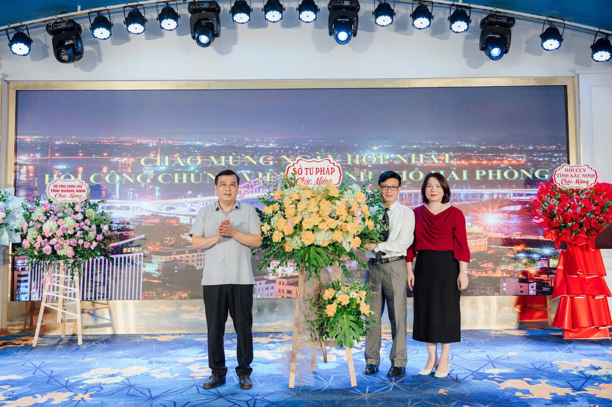 tặng hoa cho Hội Công chứng Hải Phòng trong buổi lễ hợp nhất