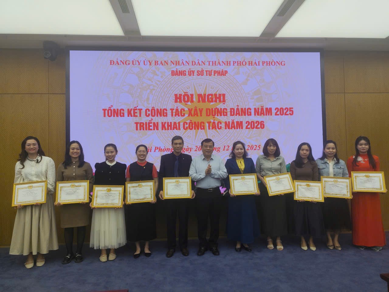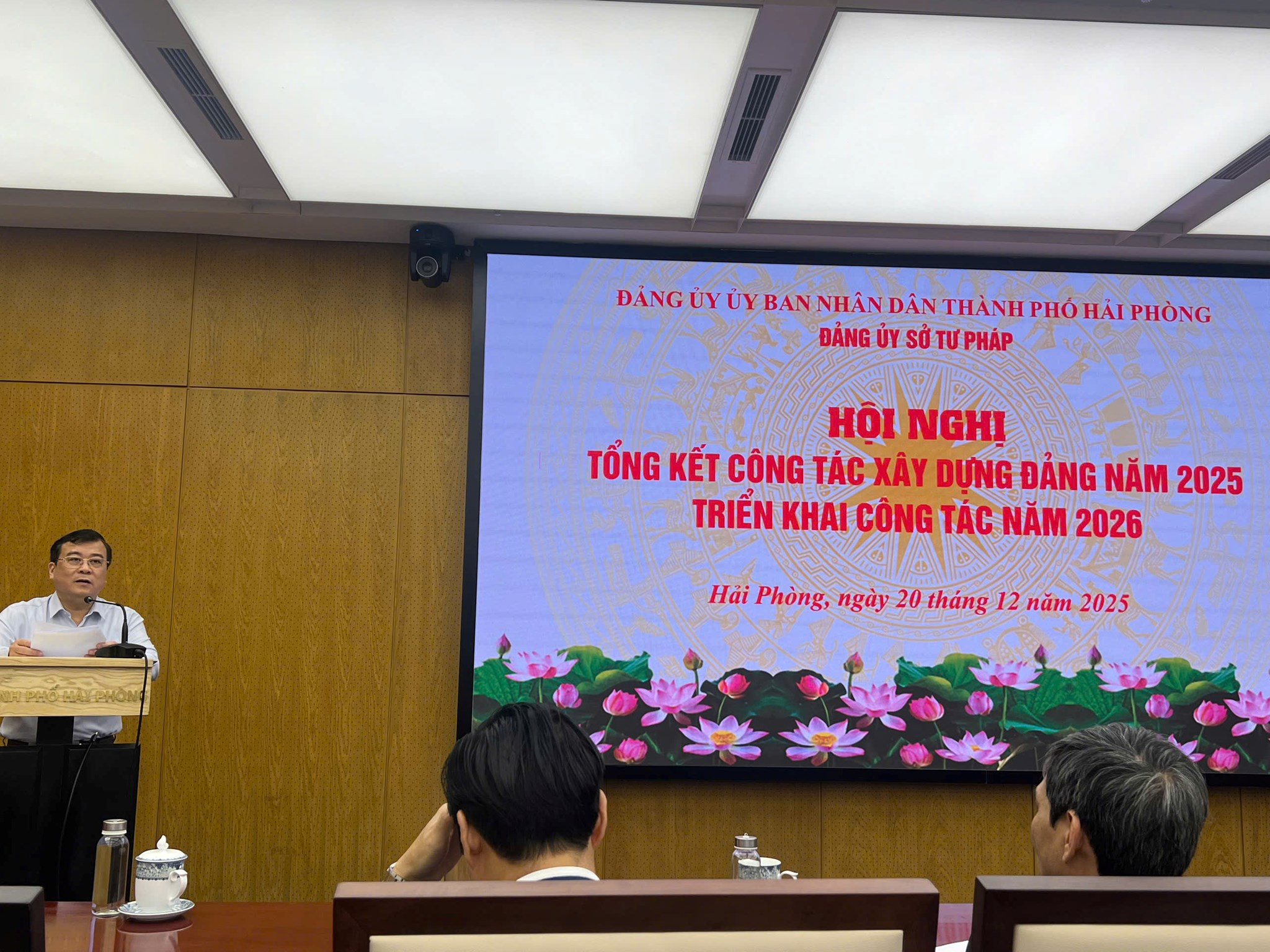Thực hiện Kế hoạch số 85/KH-ĐU ngày 04/12/2025 và Kế hoạch số 96/KH-ĐU ngày 15/12/2025 của Đảng ủy Sở Tư pháp, ngày 20/12/2025, Đảng ủy Sở Tư pháp thành phố Hải Phòng đã tổ chức Hội nghị học tập, quán triệt Nghị quyết và Chương trình hành động thực hiện Nghị quyết Đại hội Đảng bộ Ủy ban nhân dân thành phố lần thứ I, nhiệm kỳ 2025-2030; đồng thời tổng kết công tác xây dựng Đảng năm 2025, triển khai nhiệm vụ công tác xây dựng Đảng năm 2026.