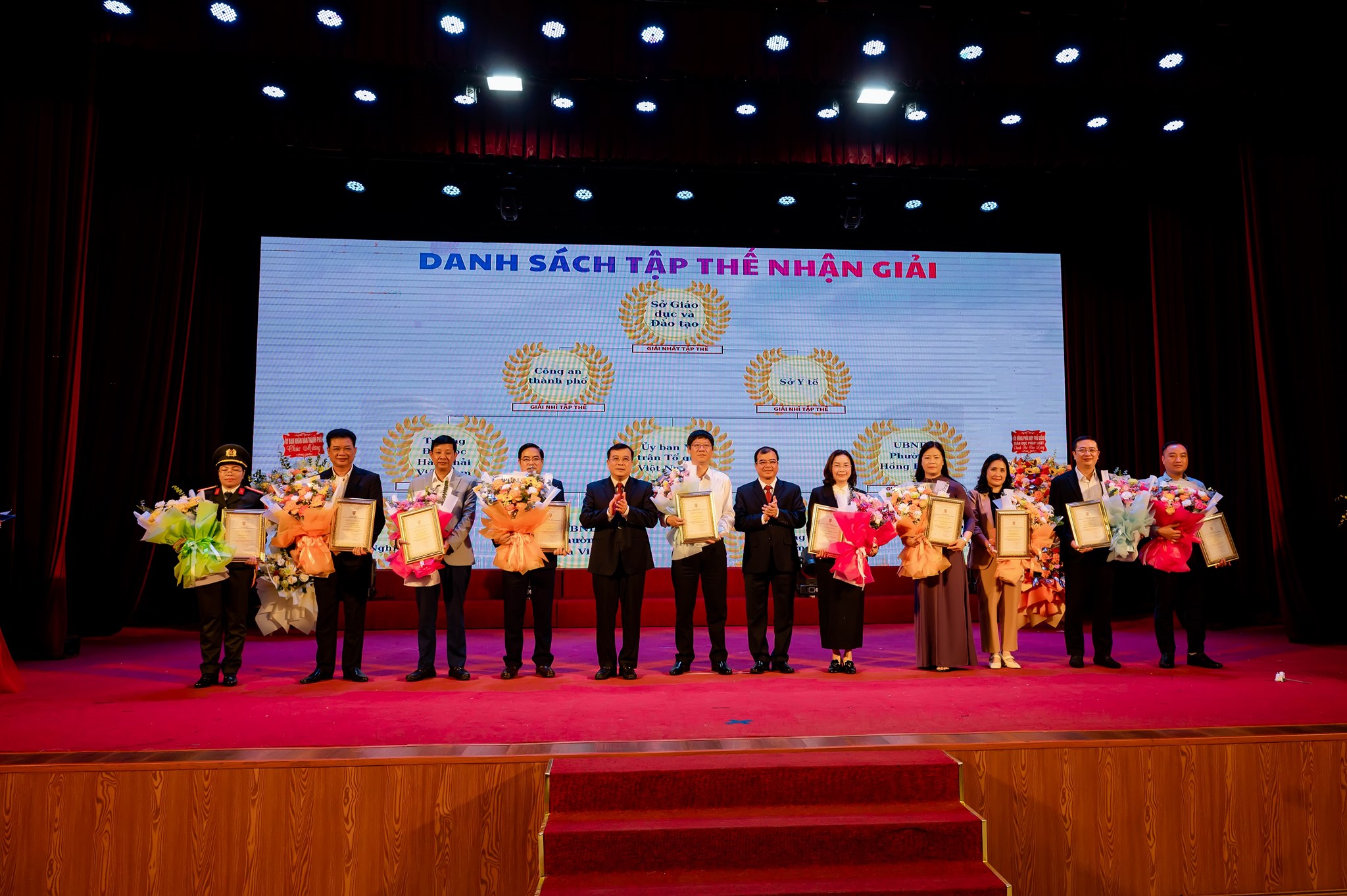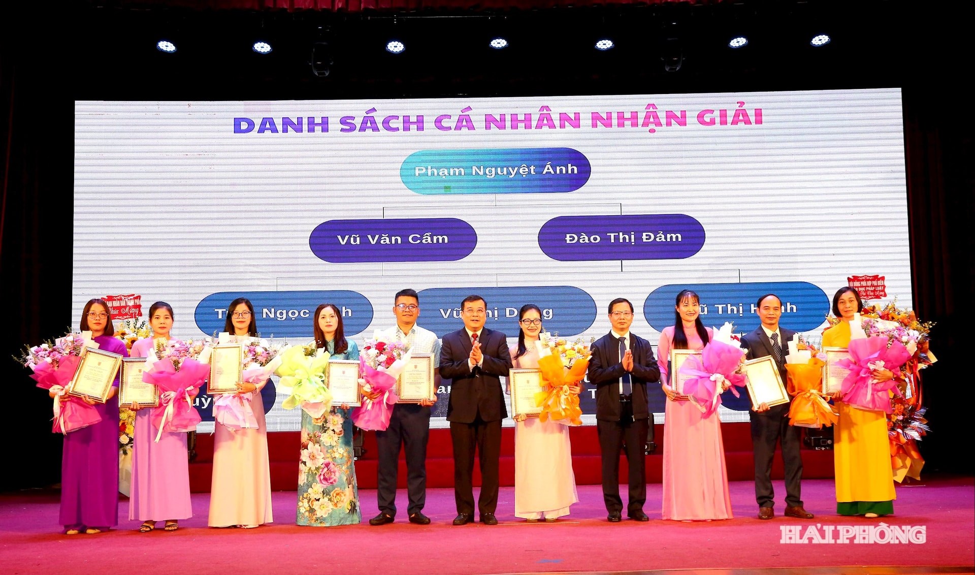và Đồng chí Ngô Quang Giáp - Ủy viên Thành ủy, Giám đốc Sở Tư pháp, Trưởng ban tổ chức trao giải cho các tập thể