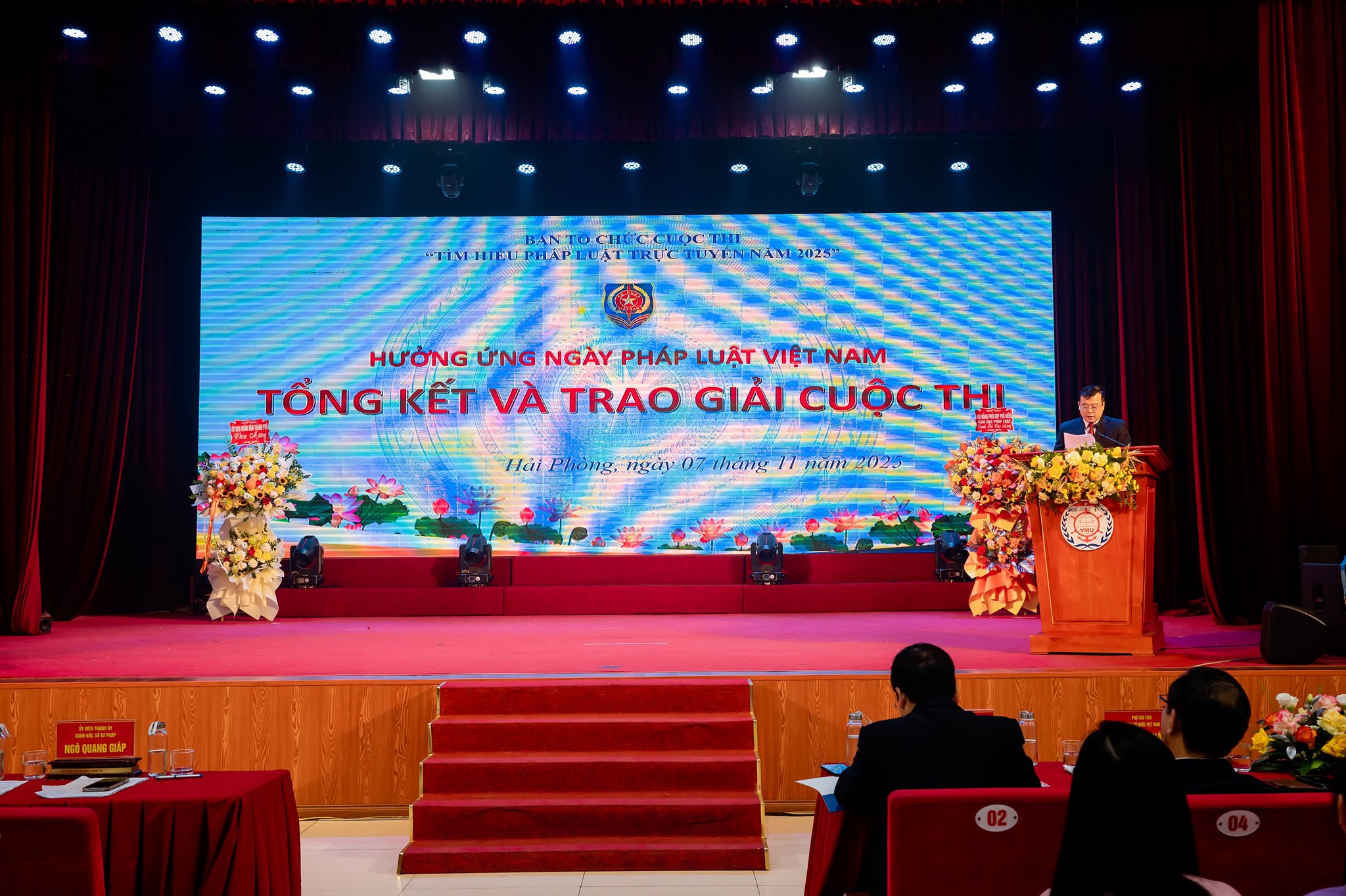 Hưởng ứng Ngày Pháp luật Việt Nam năm 2025, ngày 07/11/2025, Sở Tư pháp cơ quan thường trực Cuộc thi đã tổ chức Tổng kết và trao giải Cuộc thi cho 10 tập thể và 10 cá nhân đạt giải. Tại hội nghị, đồng chí Nguyễn Minh Hùng, Ủy viên Thành ủy, Phó Chủ tịch UBND thành phố, Chủ tịch Hội đồng phối hợp PBGDPL thành phố đã phát biểu ghi nhận, biểu dương kết quả Cuộc thi và Hưởng ứng Ngày Pháp luật Việt Nam. Đây là một hoạt động thiết thực hưởng ứng Ngày Pháp luật Việt Nam - ngày có ý nghĩa chính trị, pháp lý sâu sắc, nhằm tôn vinh Hiến pháp, pháp luật, giáo dục ý thức thượng tôn pháp luật và khẳng định vị trí, vai trò của pháp luật trong quản lý nhà nước, quản trị xã hội.