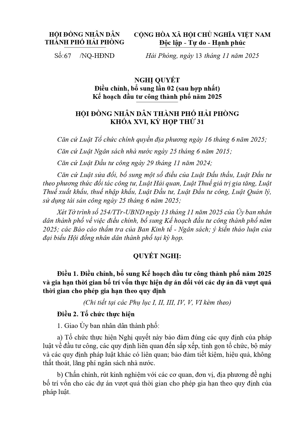 NGHỊ QUYẾT Điều chỉnh, bổ sung lần 02 (sau hợp nhất) Kế hoạch đầu tư công thành phố năm 2025