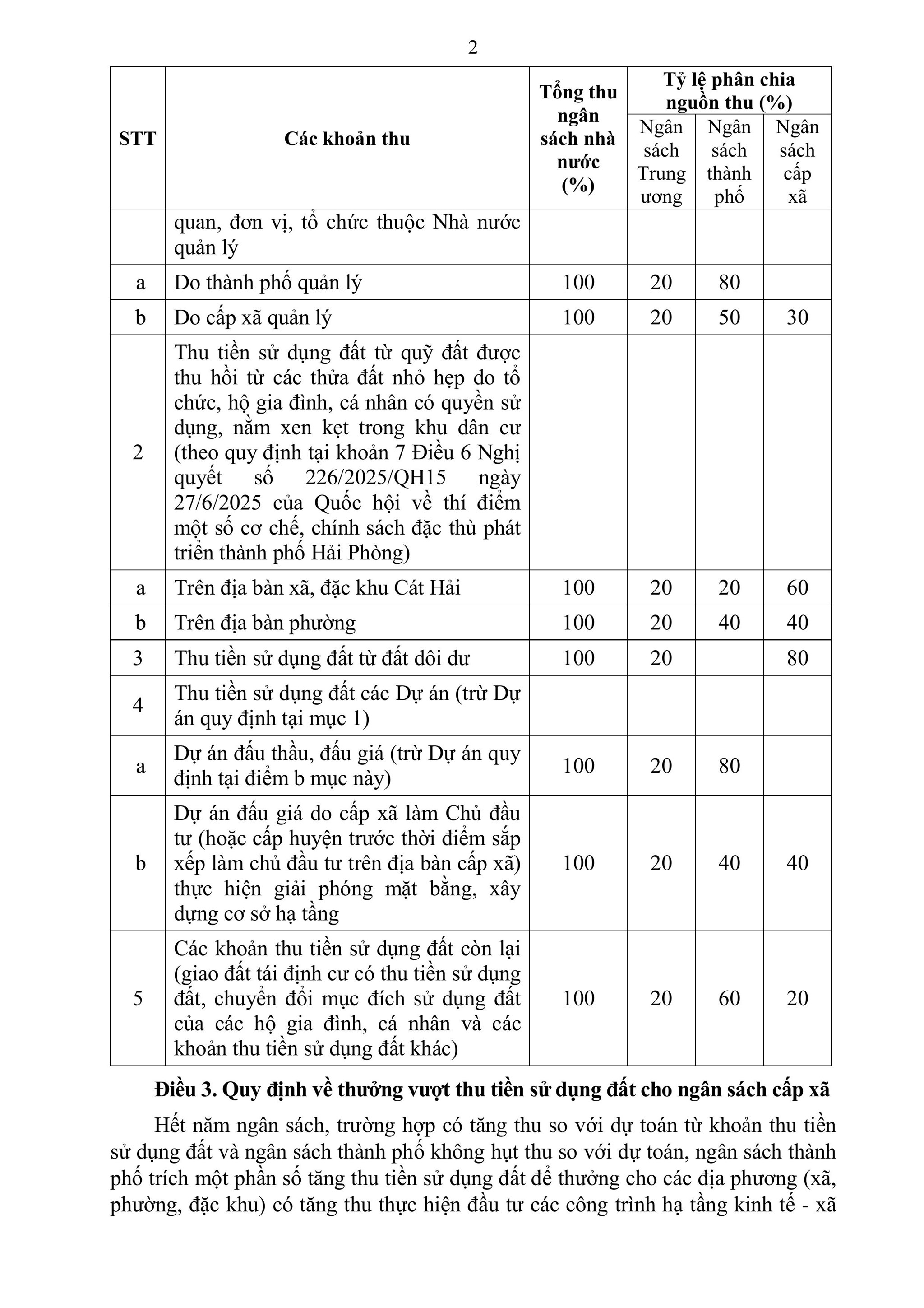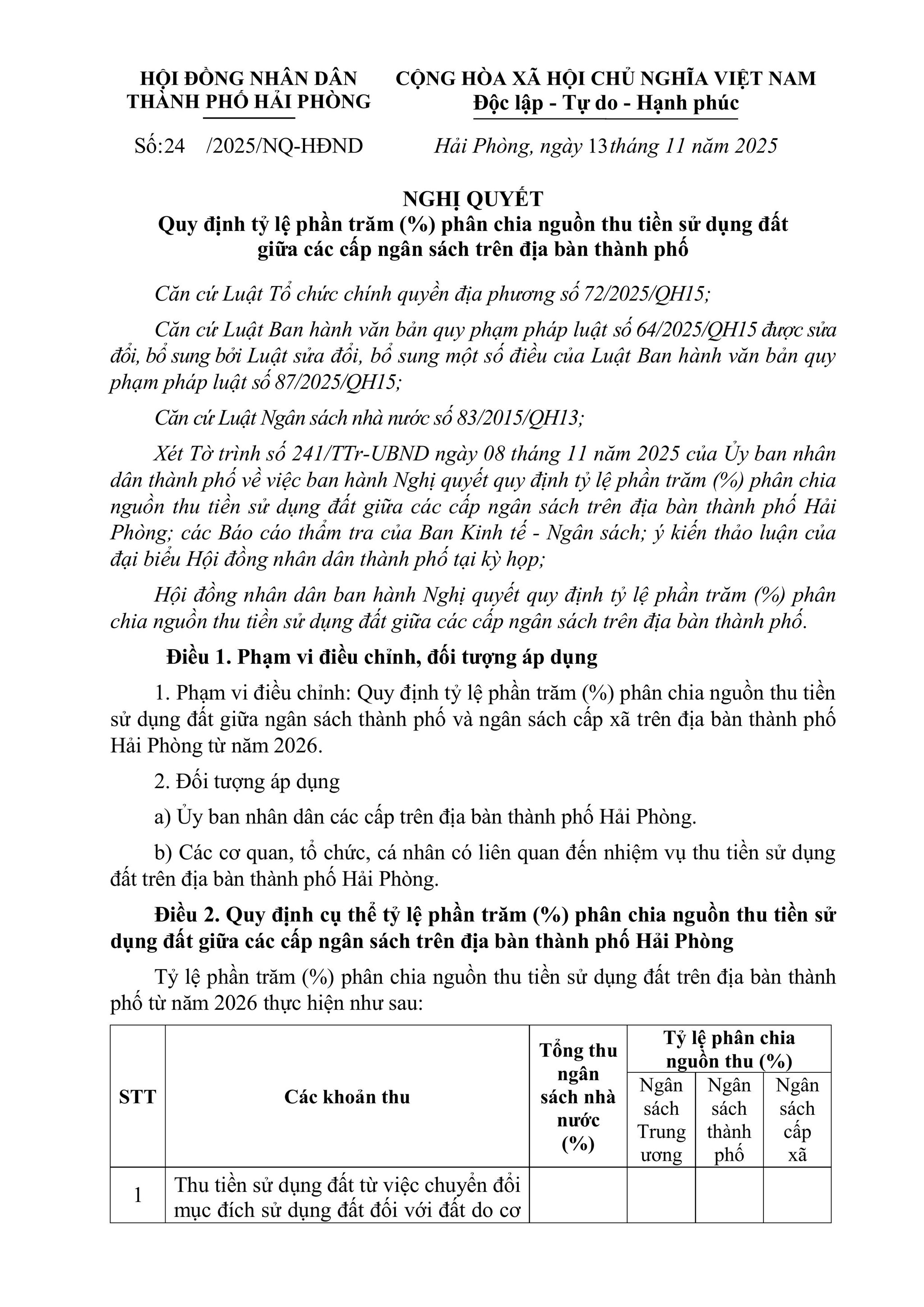 NGHỊ QUYẾT Quy định tỷ lệ phần trăm (%) phân chia nguồn thu tiền sử dụng đất giữa các cấp ngân sách trên địa bàn thành phố