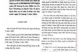 Nghị định 25/1999/NĐ-CP ngày 19/4/1999 về phương thức trả nhà ở, giá cho thuê nhà ở khi chưa trả lại nhà và thủ tục xác lập quyền sở hữu nhà ở được quy định tại Nghị quyết 58/1998/NQ-UBTVQH10 ngày 20 tháng 8 năm 1998 của Uỷ ban Thường vụ Quốc hội về giao dịch dân sự về nhà ở được xác lập trước ngày 01 tháng 7 năm 1991.