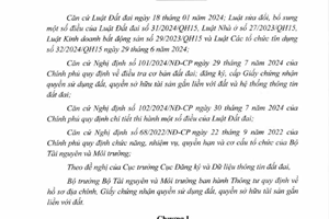 Thông tư 10/2024/TT-BTNMT quy định về hồ sơ địa chính, giấy chứng nhận quyền sử dung đất, quyền sở hữu tài sản gắn liền với đất