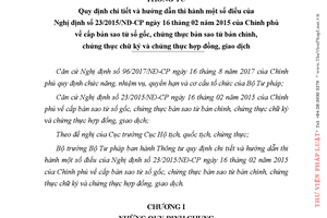 Thông tư 01/2020/TT-BTP ngày 03/3/2020 của Bộ trưởng Bộ Tư pháp quy định chi tiết và hướng dẫn thi hành một số điều của Nghị định số 23/2015/NĐ-CP ngày 16-02-2015 của Chính phủ về cấp bản sao từ sổ gốc, chứng thực bản sao từ bản chính, chứng thực chữ ký và chứng thực hợp đồng, giao dịch