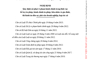 Nghị định số 82/2020/NĐ-CP ngày 15 tháng 7 năm 2020 của Chính phủ quy định xử phạt vi phạm hành chính trong lĩnh vực bổ trợ tư pháp; hành chính tư pháp; hôn nhân và gia đình; thi hành án dân sự; phá sản doanh nghiệp, hợp tác xã