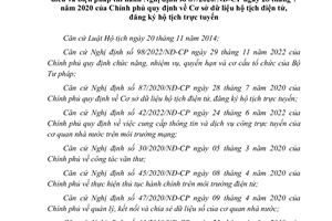 Thông tư 01/2022/TT-BTP hướng dẫn Nghị định 87/2020/NĐ-CP quy định về Cơ sở dữ liệu hộ tịch điện tử, đăng ký hộ tịch trực tuyến