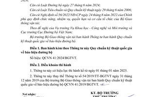 Thông tư 51/2024/TT-BGTVT ngày 15/11/2024 về Quy chuẩn kỹ thuật quốc gia về báo hiệu đường bộ do Bộ trưởng Bộ Giao thông vận tải ban hành