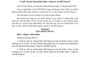 Thông tư 82/2024/TT-BCA ngày 15/11/2024 quy định về chứng nhận chất lượng an toàn kỹ thuật và bảo vệ môi trường của xe cơ giới, xe máy chuyên dùng, phụ tùng xe cơ giới trong nhập khẩu, sản xuất, lắp ráp, cải tạo và kiểm định xe cơ giới, xe máy chuyên dùng thuộc phạm vi quản lý của Bộ Công an