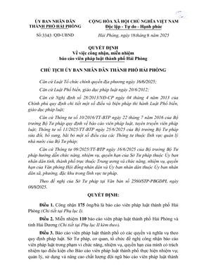 Quyết định số 3343/QĐ-UBND ngày 18/8/2025 về việc công nhận, miễn nhiệm báo cáo viên pháp luật thành phố