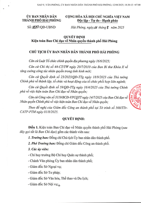 Quyết định kiện toàn Ban chỉ đạo về nhân quyền thành phố Hải Phòng