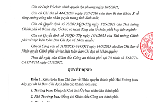 Quyết định kiện toàn Ban chỉ đạo về nhân quyền thành phố Hải Phòng