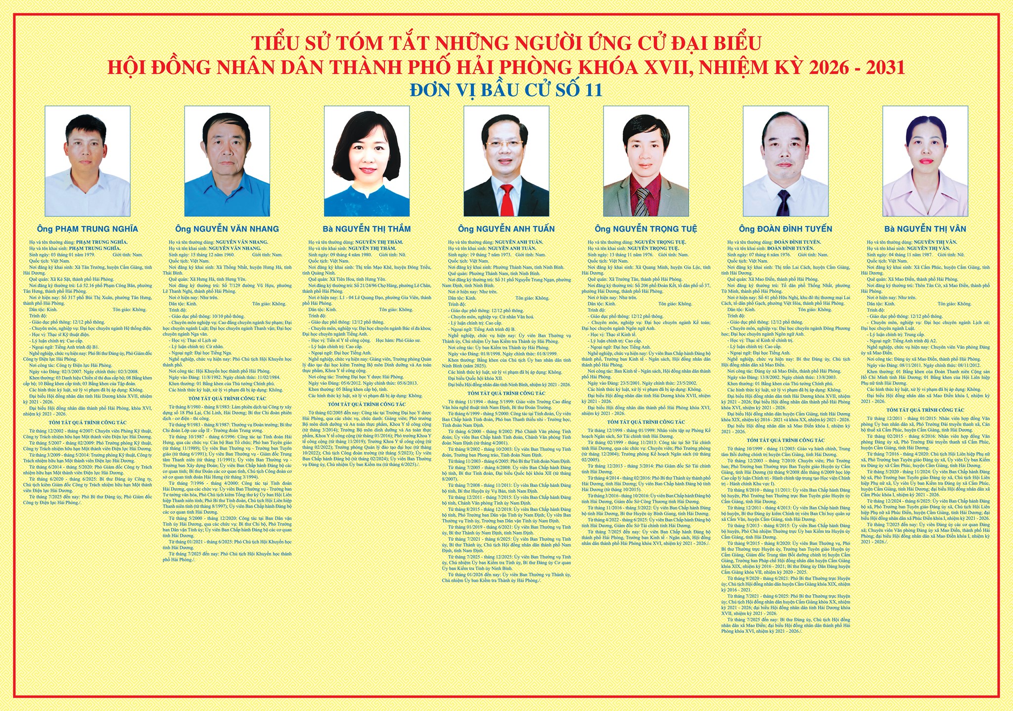 TIỂU SỬ TÓM TẮT NHỮNG NGƯỜI ỨNG CỬ ĐẠI BIỂU HĐND THÀNH PHỐ HẢI PHÒNG KHÓA XVII, NHIỆM KỲ 2026-2031 - ĐƠN VỊ BẦU CỬ SỐ 11