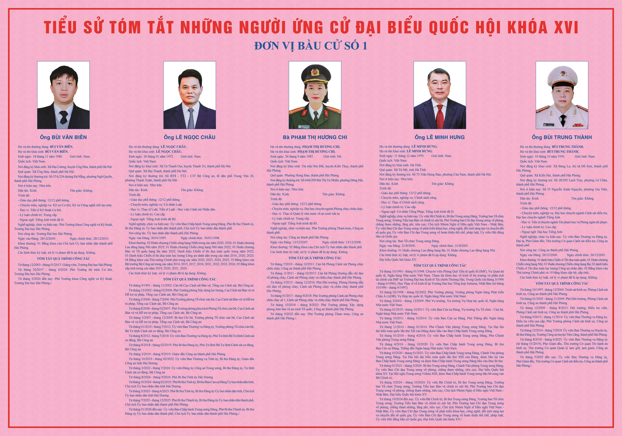 TIỂU SỬ TÓM TẮT NHỮNG NGƯỜI ỨNG CỬ ĐẠI BIỂU HĐND THÀNH PHỐ HẢI PHÒNG KHÓA XVII, NHIỆM KỲ 2026-2031 - ĐƠN VỊ BẦU CỬ SỐ 5