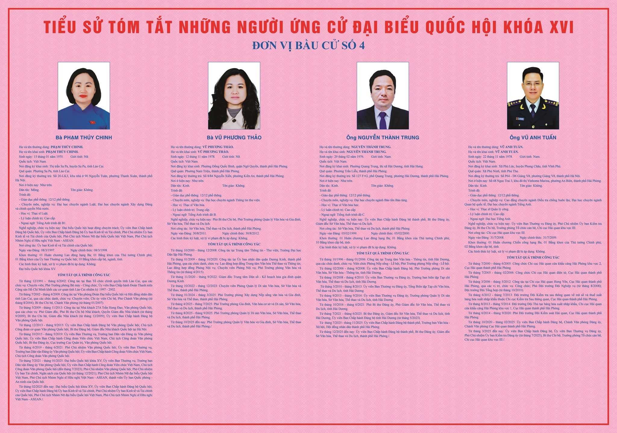 TIỂU SỬ TÓM TẮT NHỮNG NGƯỜI ỨNG CỬ ĐẠI BIỂU QUỐC HỘI KHÓA XVI - ĐƠN VỊ BẦU CỬ SỐ 4