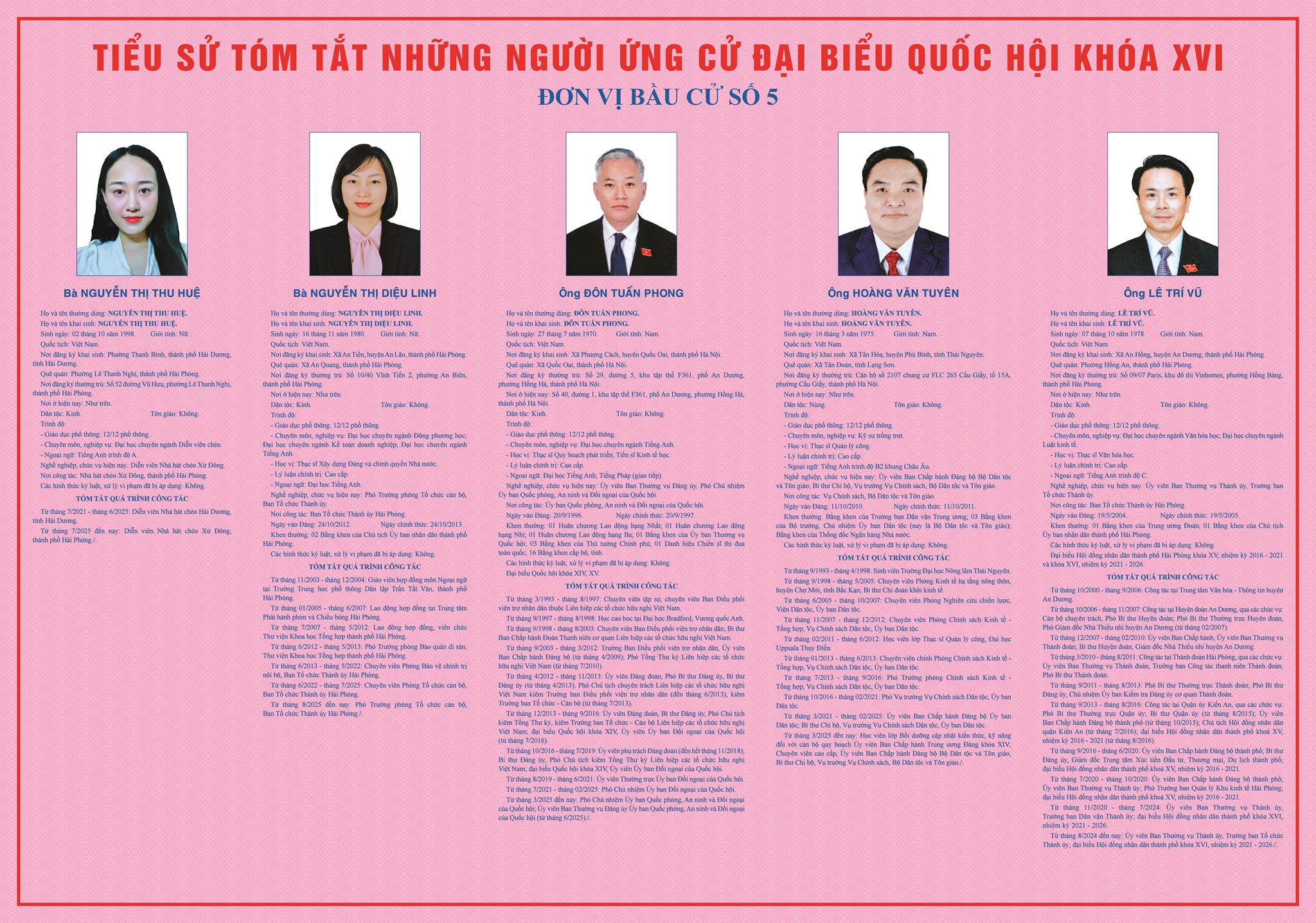 TIỂU SỬ TÓM TẮT NHỮNG NGƯỜI ỨNG CỬ ĐẠI BIỂU QUỐC HỘI KHÓA XVI - ĐƠN VỊ BẦU CỬ SỐ 5