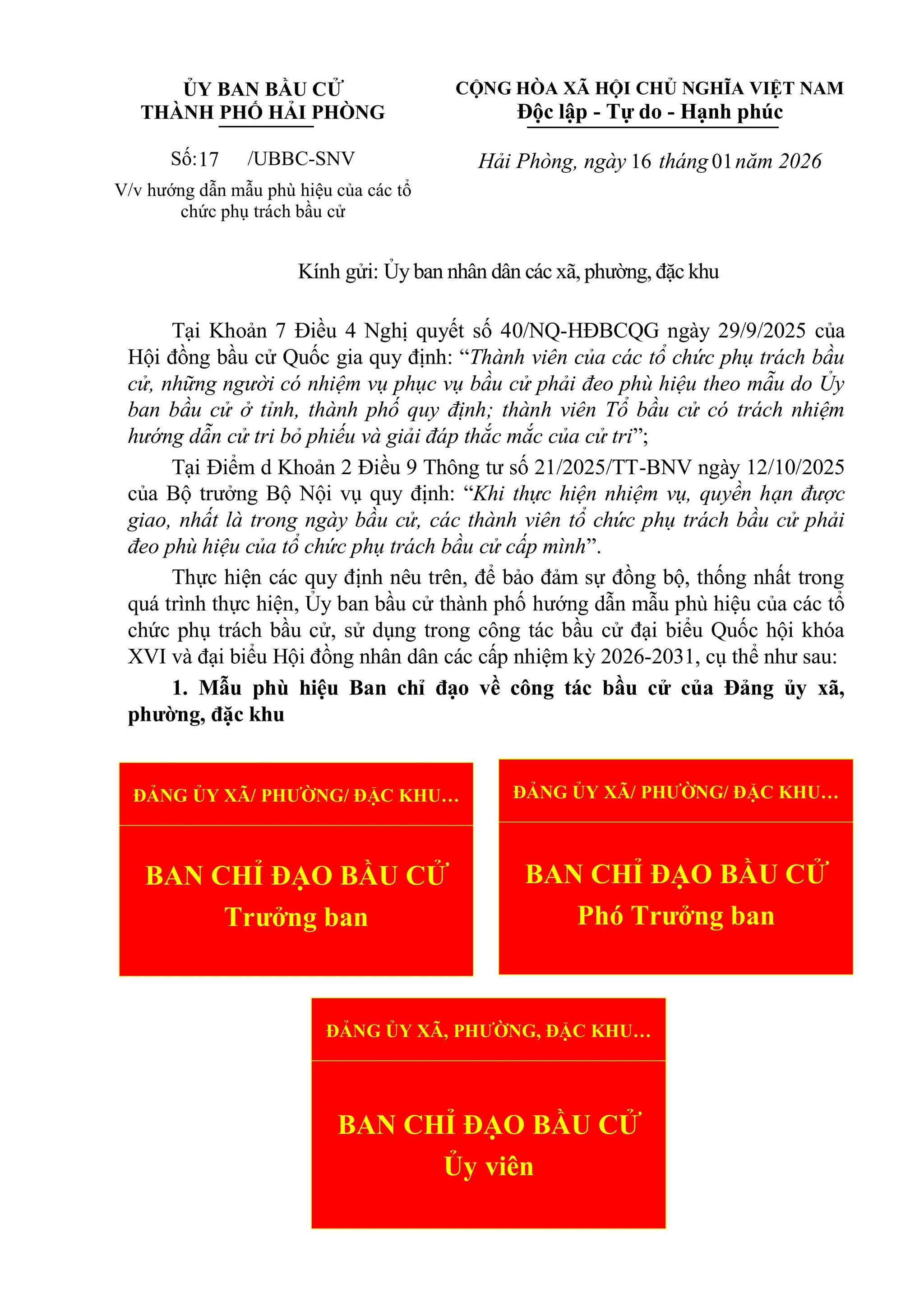 Hướng dẫn mẫu phù hiệu của các tổ chức phụ trách bầu cử
