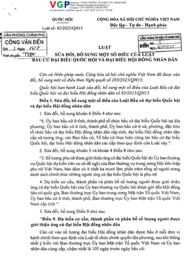 Luật số 83/2025/QH15 của Quốc hội: Luật sửa đổi, bổ sung một số điều của Luật Bầu cử đại biểu Quốc hội và đại biểu Hội đồng nhân dân