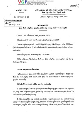 Nghị định số 130/2025/NĐ-CP của Chính phủ: Quy định về phân quyền, phân cấp trong lĩnh vực thống kê