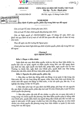 Nghị định số 134/2025/NĐ-CP của Chính phủ quy định về phân quyền, phân cấp trong lĩnh vực đối ngoại