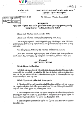 Nghị định số 137/2025/NĐ-CP của Chính phủ: Quy định về phân định thẩm quyền của chính quyền địa phương 02 cấp trong lĩnh vực văn hóa, thể thao và du lịch