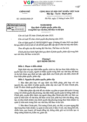 Nghị định số 138/2025/NĐ-CP của Chính phủ: Quy định về phân quyền, phân cấp trong lĩnh vực văn hóa, thể thao và du lịch