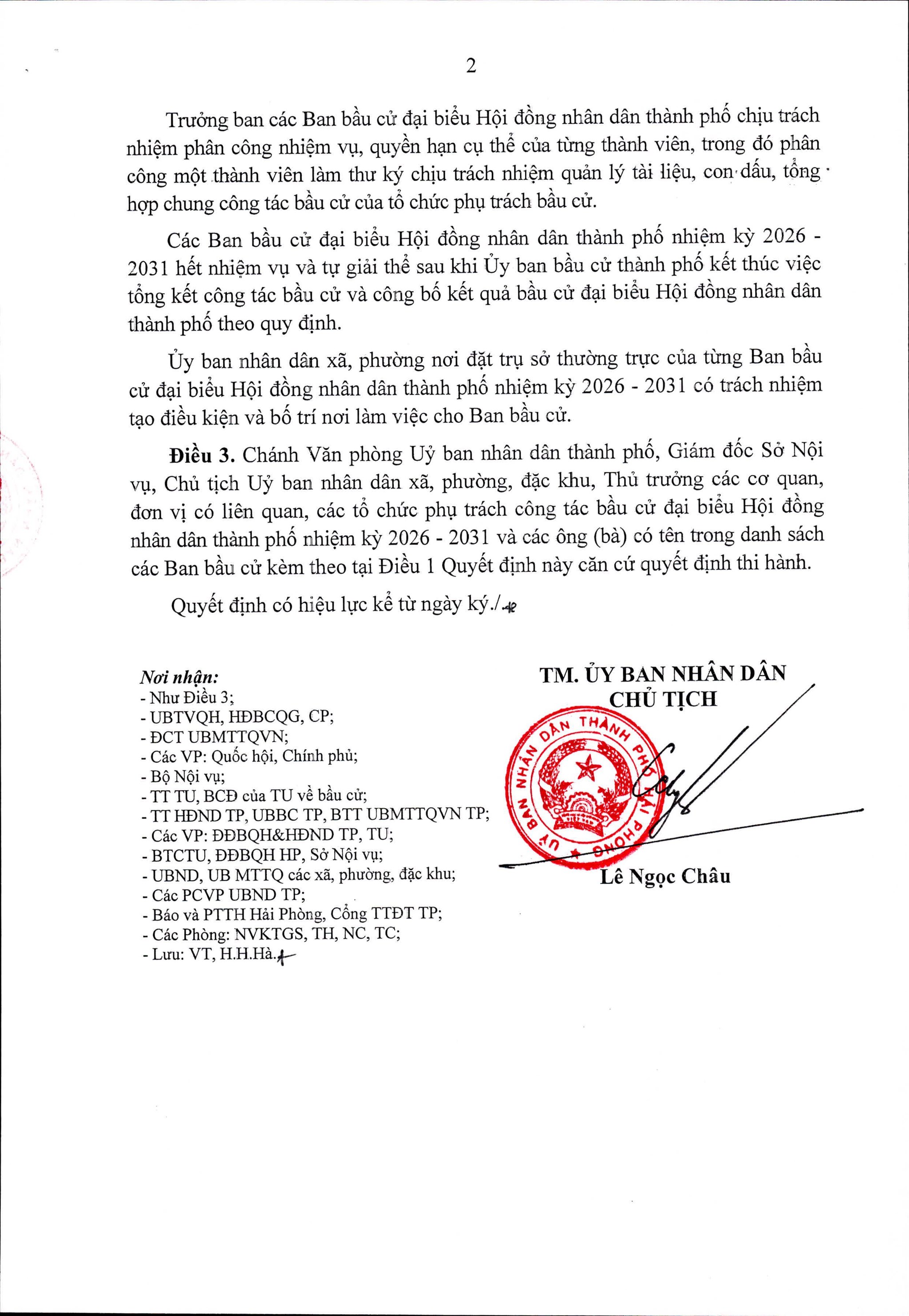 Quyết định Về việc thành lập các Ban bầu cử đại biểu Quốc hội khóa XVI tại thành phố Hải Phòng